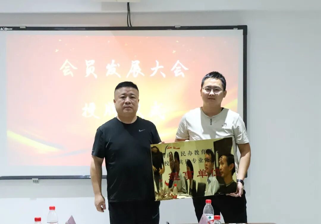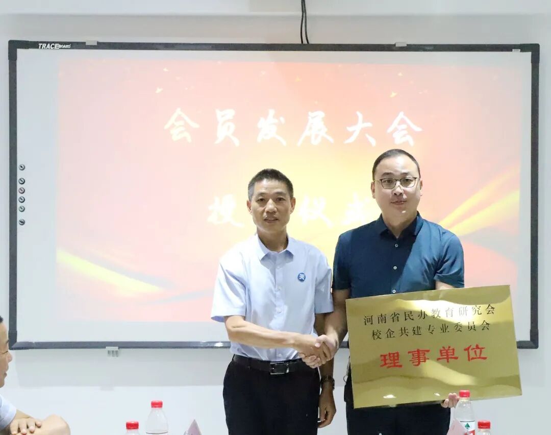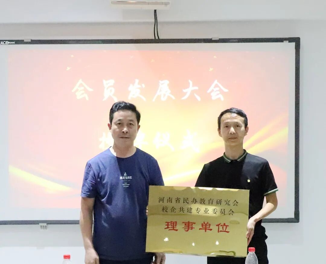 会上为新会员企业颁发了理事单位牌,这标志着新会员企业正式加入了河南省民办教育研究会校企共建专委会,加入了校企共建的服务平台。